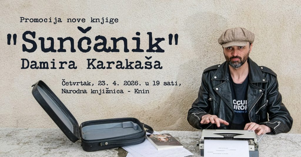 Ljubitelje književnosti za Noć knjige u Kninu očekuje posebna večer – u četvrtak, 23. travnja u 19 sati u Narodnoj knjižnici Knin gostuje Damir Karakaš koji će predstaviti svoj novi roman “Sunčanik”.
